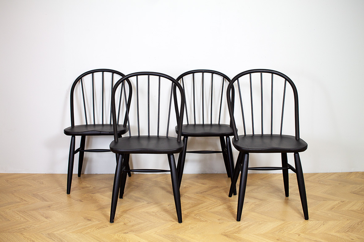 4 kpl mustia kaariselkäisiä af Ornäs -pinnatuoleja 50-60-luvulta. Tuolit myydään yhdessä.
