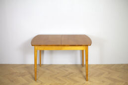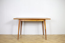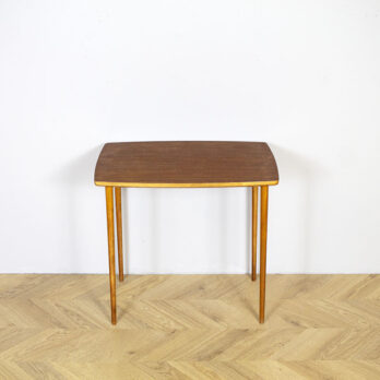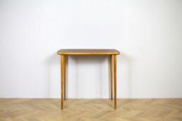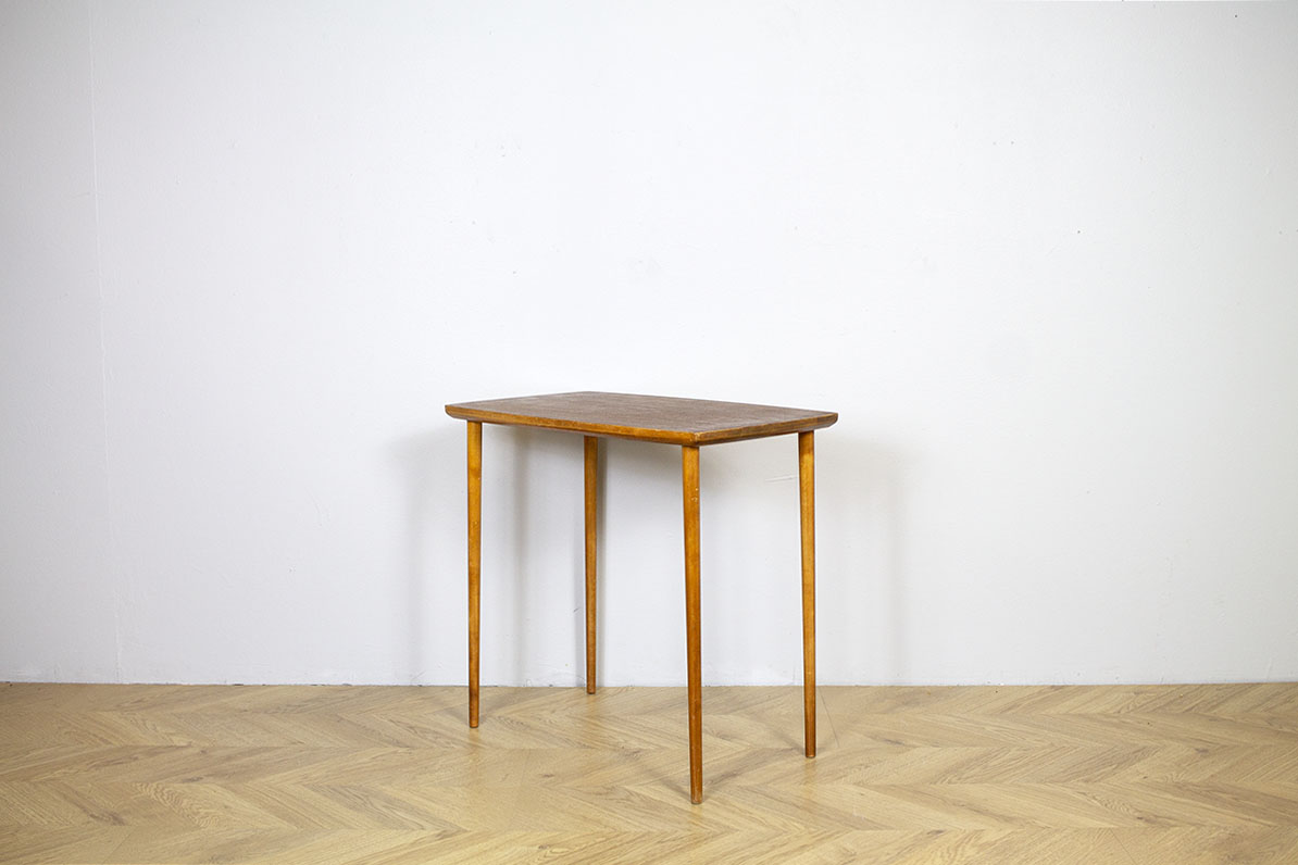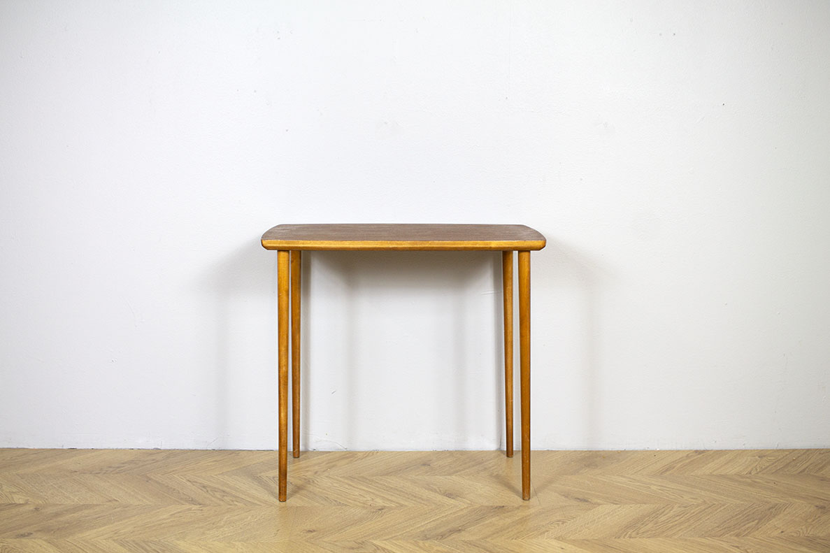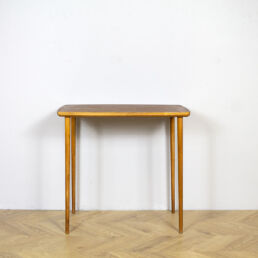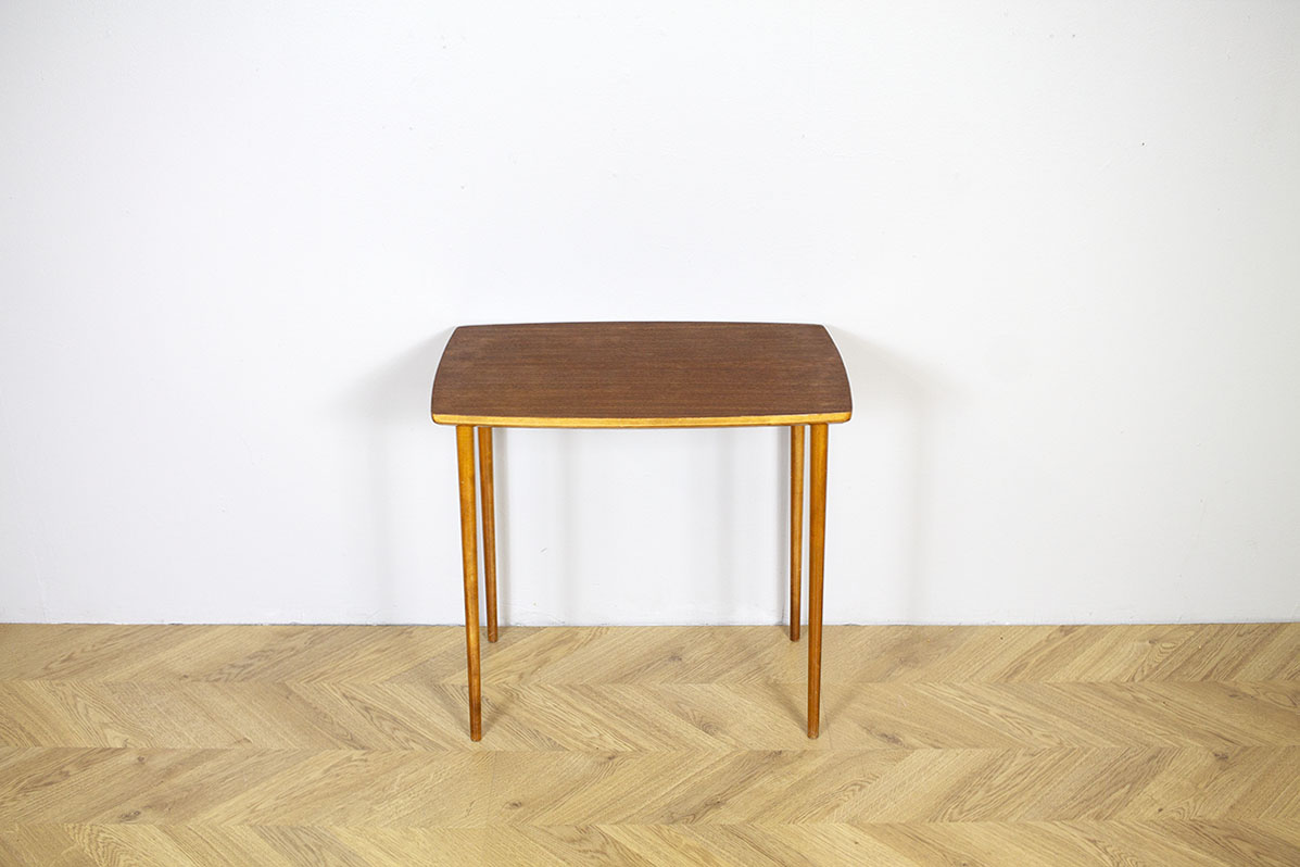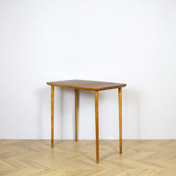 Mahonkiviilutettu pikkupöytä. Jalat lakattua koivua.