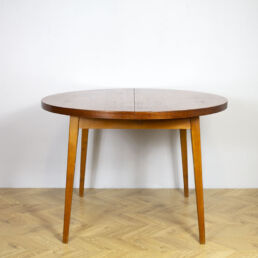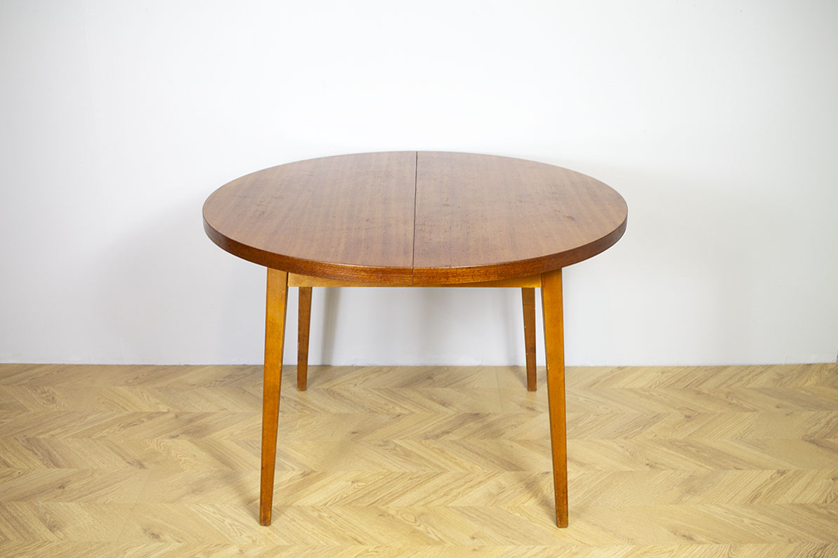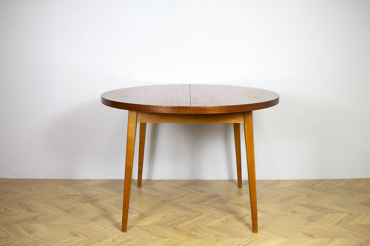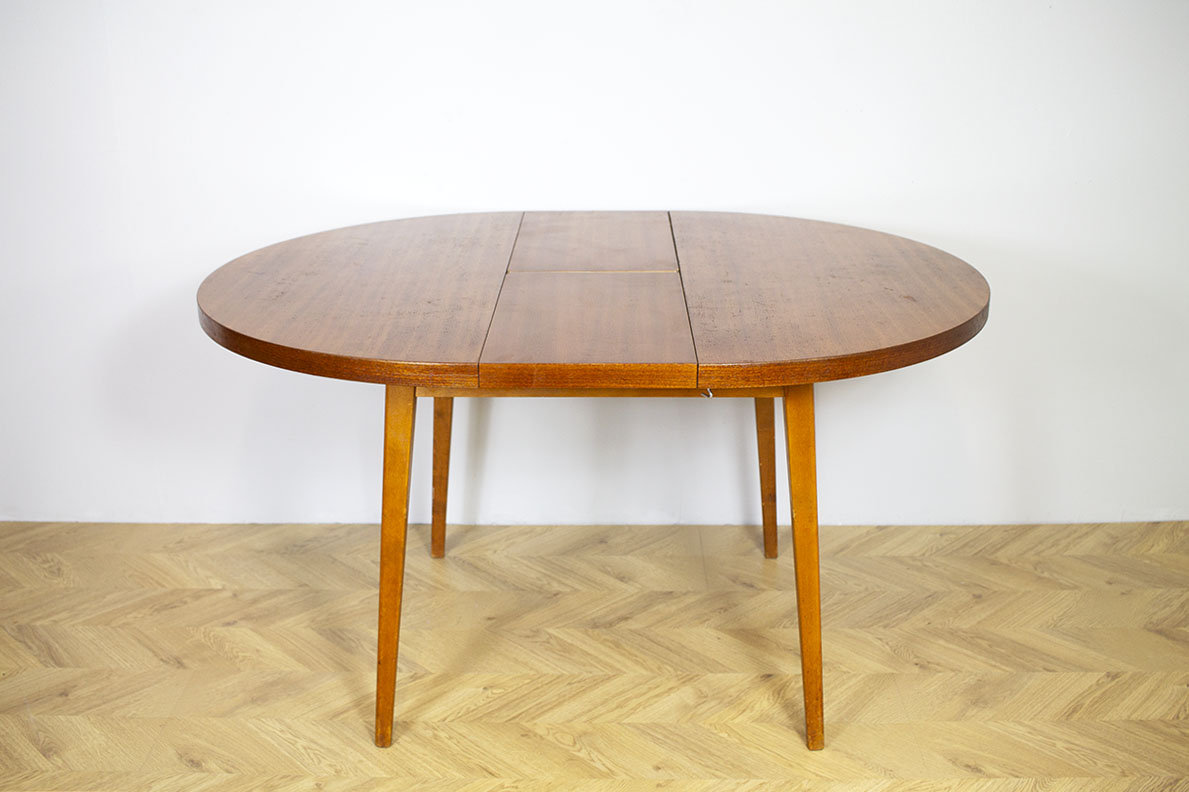 60-luvun tiikkinen jatkettava ruokapöytä. Pöydässä lievää kulumaa.